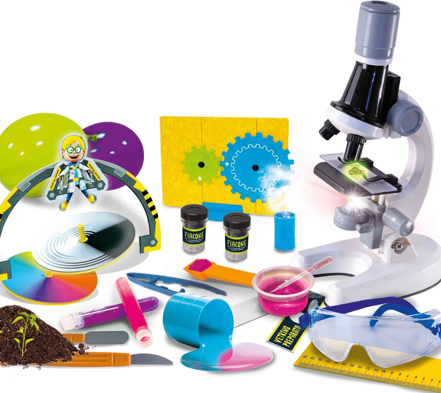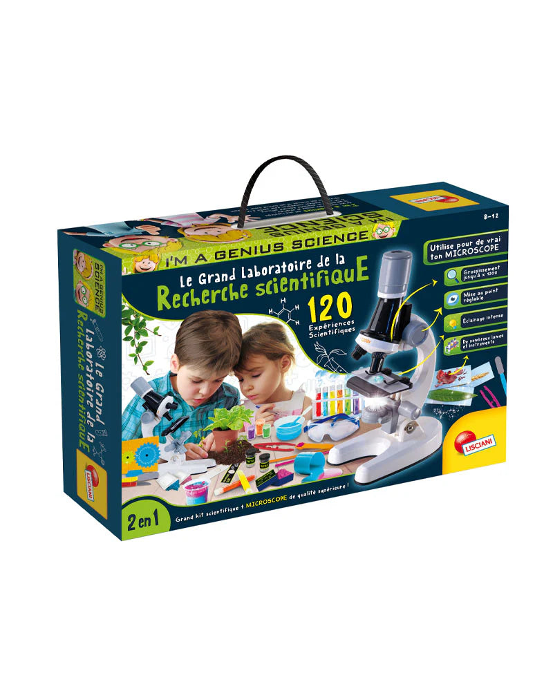 مجموعة علمية متكاملة تتيح للأطفال خوض أكثر من 120 تجربة علمية ممتعة في مجالات الأحياء والكيمياء والعلوم الطبيعية. تتضمن ميكروسكوب حقيقي بجودة عالية مع عدسات تكبير متعددة، إضاءة قوية، وأدوات جاهزة لتحضير الشرائح وملاحظة العينات بدقة. تجربة تعليمية عملية تنمّي مهارات الملاحظة، التحليل، وحب الاستكشاف، مناسبة للأطفال من 8 إلى 12 سنة، صناعة إيطالية بجودة متميزة.