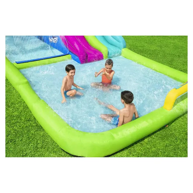 – مصنوع من مادة بوليستر متينة وملونة مغلفة بالبولي فينيل كلوريد – منزلق مائي مكون من حارتين جاهز للسباق – جدران شبكية في قمة البرج للسلامة – الإعداد سريع وسهل المنفاخ الثقيل ينفخ الحديقة المائية في أقل من دقيقتين – وسادة بخاخ الماء تحافظ على الانزلاق – الرشاش يخلق جدارًا من الماء للجري والقفز من خلاله – 6 أعلام صغيرة متضمنة في سباقات التتابع – مضمار عقبة مدمج مع أكياس تثقيب وكرة رش – علبة ألوان كاملة – مصمم للاستخدام في الهواء الطلق – شريحة واحدة – 1 أوتاد منفاخ متضمنة – 1 طقم تصليح تصحيحات متعددة – 1 حقيبة تخزين – 10 أوتاد للحارس – 1 مرشة كروية PVC – 6 أعلام صغيرة – 1 خرطوم رش الماء
