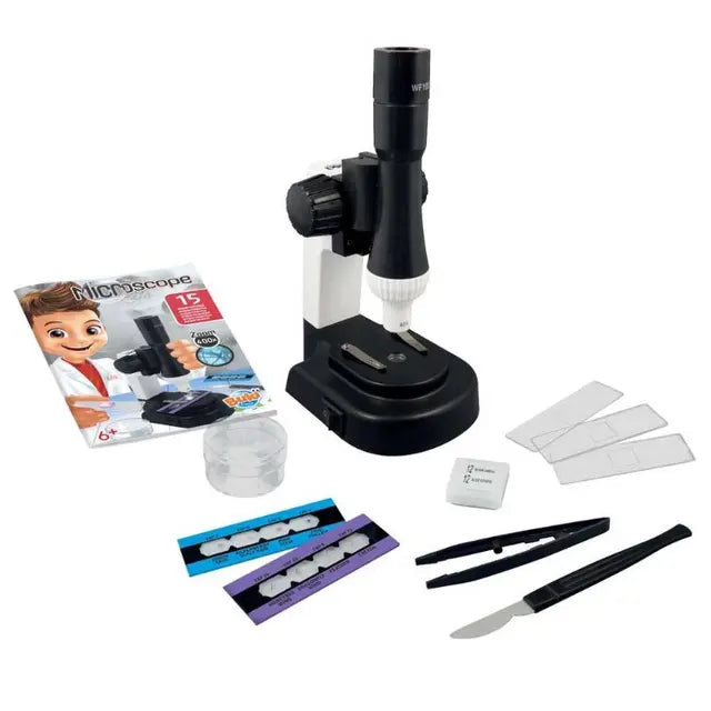 – يتضمن كتيب ملون مصور. – يتطلب بطاريتين LR06 ، غير متضمنة. – راقب العالم المجهري باستخدام مجهر يتميز بتكبير 400x ، وهو مثالي للمبتدئين. – يحتوي 15 تجربة لفهم المواد من حولنا ، مع معدات لتحضير العينات الخاصة بك. – الفئة العمرية المناسبة: من عمر 8 سنوات فما فوق.