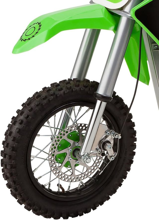 دراجة نارية ديرت روكيت أس إكس500 ماكجراث – أخضر من رازور. – مصممة بحجم يصل إلى أصغر الدراجين. – تحمل الدراجين بسرعات تصل إلى 14 ميلاً في الساعة22 كم / ساعة. – تحتوي على بطارية قابلة لاعادة الشحن ما يصل إلى 40 دقيقة. – تحتوي على محرك متغير السرعة. – تتميز بمقبض تعليق ومقبض مزدوج وإطارات كبيرة تعمل بالهواء المضغوط ومسند قابل للسحب ومكابح قرصية مزدوجة تعمل يدويًا. – الابعاد التقريبية: 129.54 × 63.50 × 88.90 سم. – الفئة العمرية المناسبة: 13-10 سنوات.
