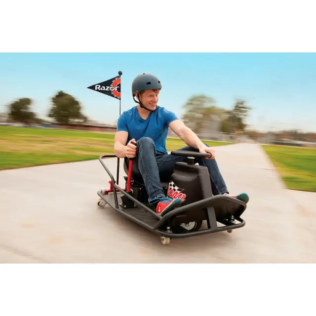 سيارة كريزي كارت إكس إل من رايزور. – تأتي بإطار أمامي هوائي عالي التأثير وعجلات دوارة لمزيد من المتانة. – من المؤكد أن طفلك سيستمتع بدواسة القدم متغيرة السرعة. – تحتوي على بطارية قابلة لإعادة الشحن بجهد 36 فولت. – مزودة بحجرة تغيير سريع وقت تشغيل يصل إلى 40 دقيقة من الاستخدام المتواصل. – الأبعاد التقريبية: 109 × 76،5 × 66،6سم. – الفئة العمرية المناسبة: 13-10 سنوات.